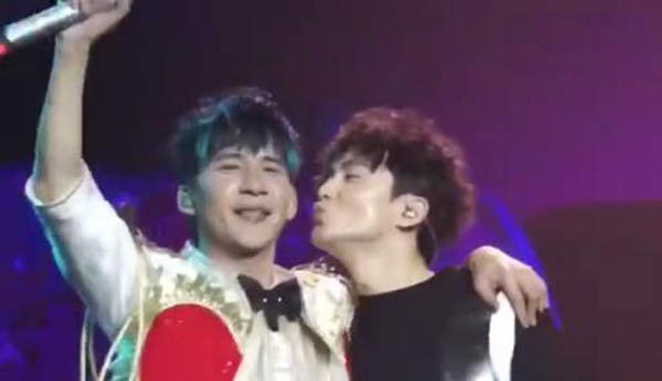 10月27日,大张伟在成都举办了自己的演唱会,在和好友沈凌对唱《童话生死恋》情到浓时的时候,沈凌偷亲大张伟,萌得全场惊叫。