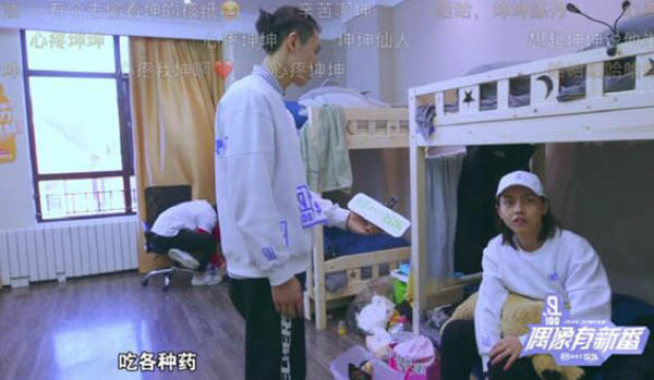 周锐又开始滔滔不绝爆料了:“我们寝室主打养生,那边(指着蔡徐坤的床)有个炼仙丹的,今天稍微收拾了一下,平时他的前面会有很多仙丹,他起来之后,加湿器开着,那个地方远处他炼仙丹(云雾缭绕)。”