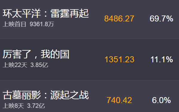网友反应《环太平洋2》没感觉了,事实也是如此,《环太平洋2》的首日票房势头却很猛,但是口碑却扑街。《环太平洋2》跟《环太平洋》比真的没感觉。没有那种燃的感觉。